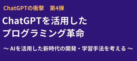 大好評を博したシリーズの第4弾として、今回は「ChatGPTを活用したプログラミング革命」と銘打って未来の開発や学習風景に焦点を当てます。