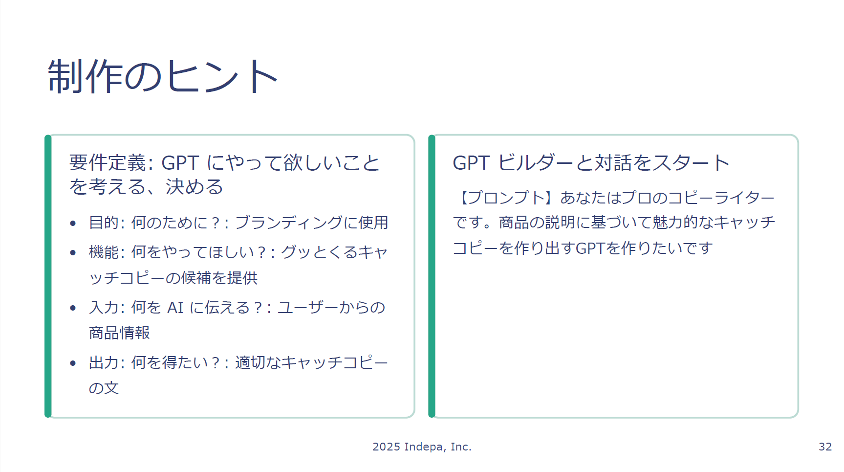 GPTアプリを自分専用にカスタマイズする方法、プロンプトの書き方のコツ、学習データの追加や調整方法、GPTアプリの振る舞いを細かく制御する方法、GPTアプリを公開する際のリスクや注意点を説明します。