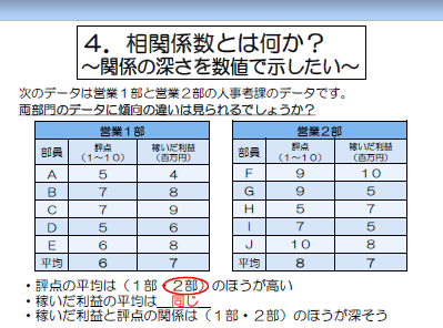 相関係数、回帰分析、偏差、代表値、ヒストグラム。