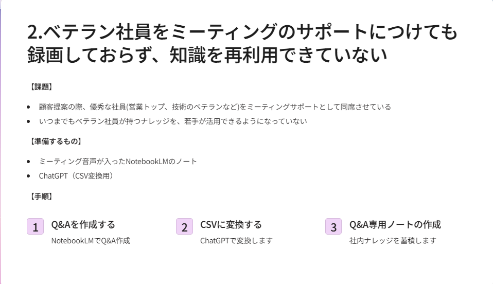・ベテラン社員の知識を蓄積・活用できていない → NotebookLM