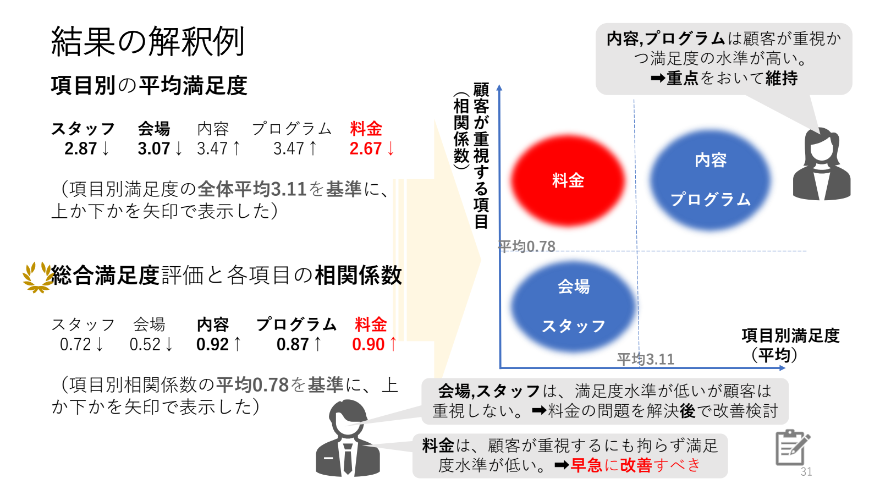 アンケートの満足度スコアと顧客行動(例:購入頻度、カートの平均サイズ)の関連性を分析し、顧客満足度向上のための具体的な施策を導き出す。