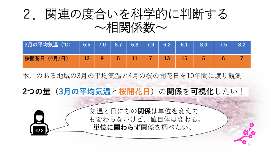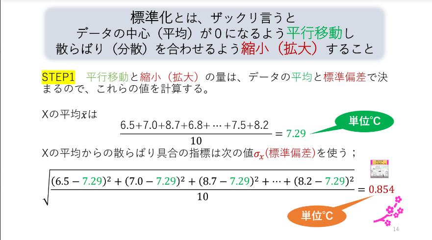 - 統計の基本的な用語や概念(分散、標準偏差、標準化データ、相関係数等)を理解できる