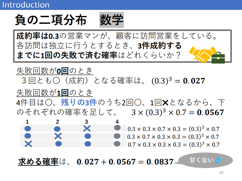 実務で役立つ負の二項分布の概念を具体的な事例で解説します。